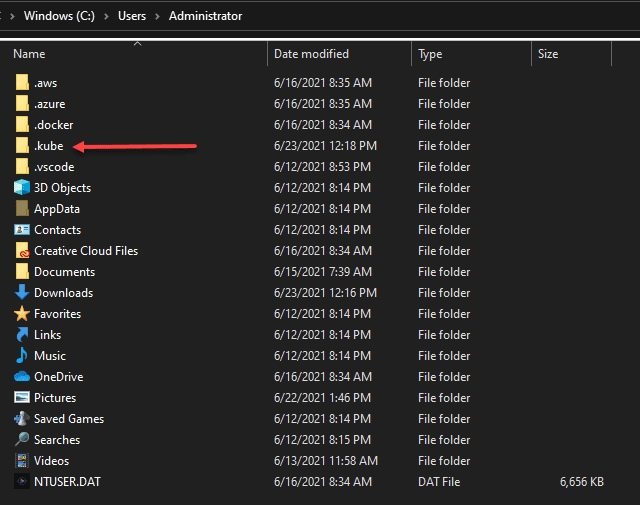 For Windows, this is the root of your %USERPROFILE% directory of the user that will be running the kubectl command. All you need to do is create the “.kube” directory in this directory.