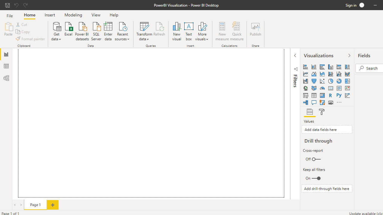To start, open the Power BI Desktop and save it as PowerBI Visualization.