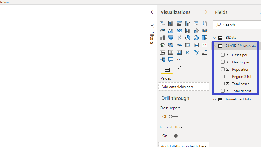 You have loaded the web file in the canvas, and the Fields pane contains the variables of the data.
