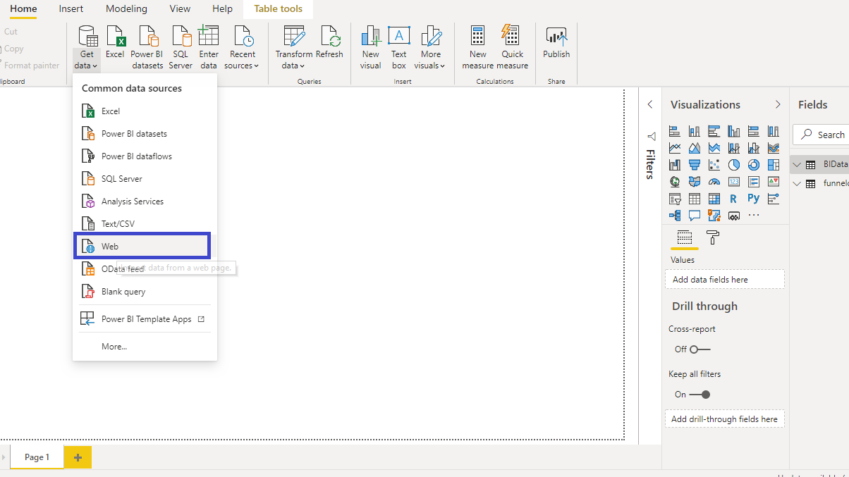 Sometimes you are required to load data directly from the web. Power BI provides the option to get data from the web. To begin, click on Get data option and select Web from the options.