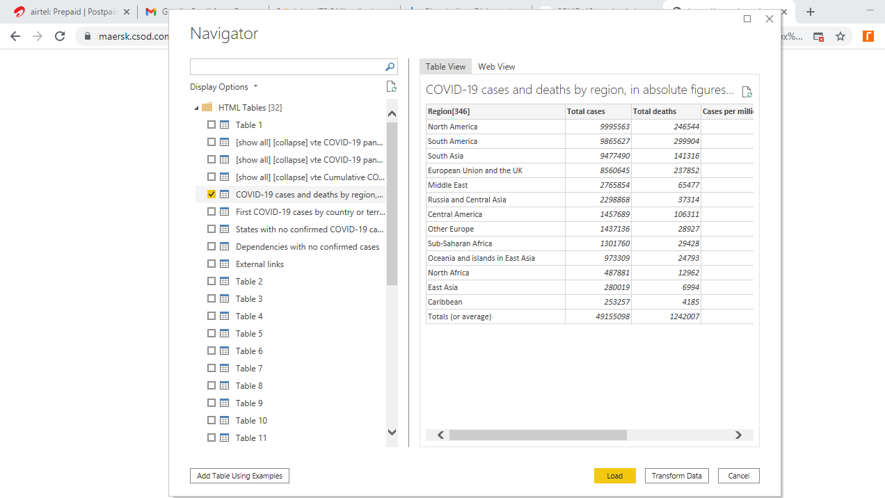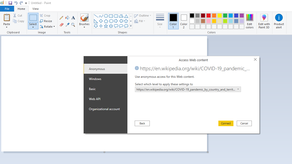 This will open a tab where you can enter the web link as shown below. The data comes from Wikipedia, and you can visit the link here.