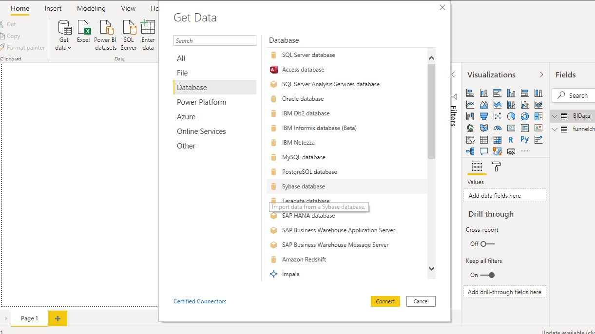 A new window is opened, where on the left side it shows a category of all available data sources.