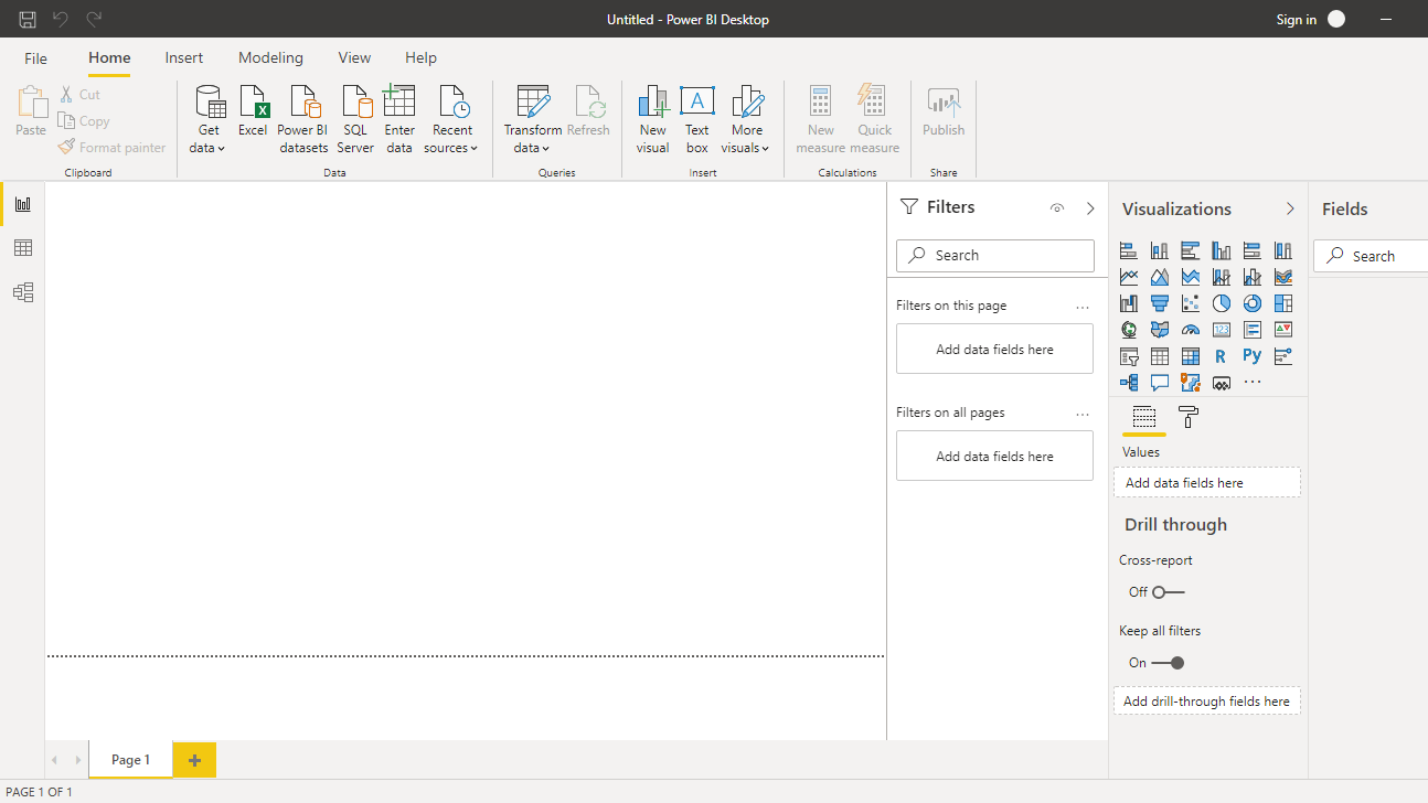 You have loaded the file, and you can save the dashboard. It is named PowerBI Visualization. The Fields pane contains the variables of the data.