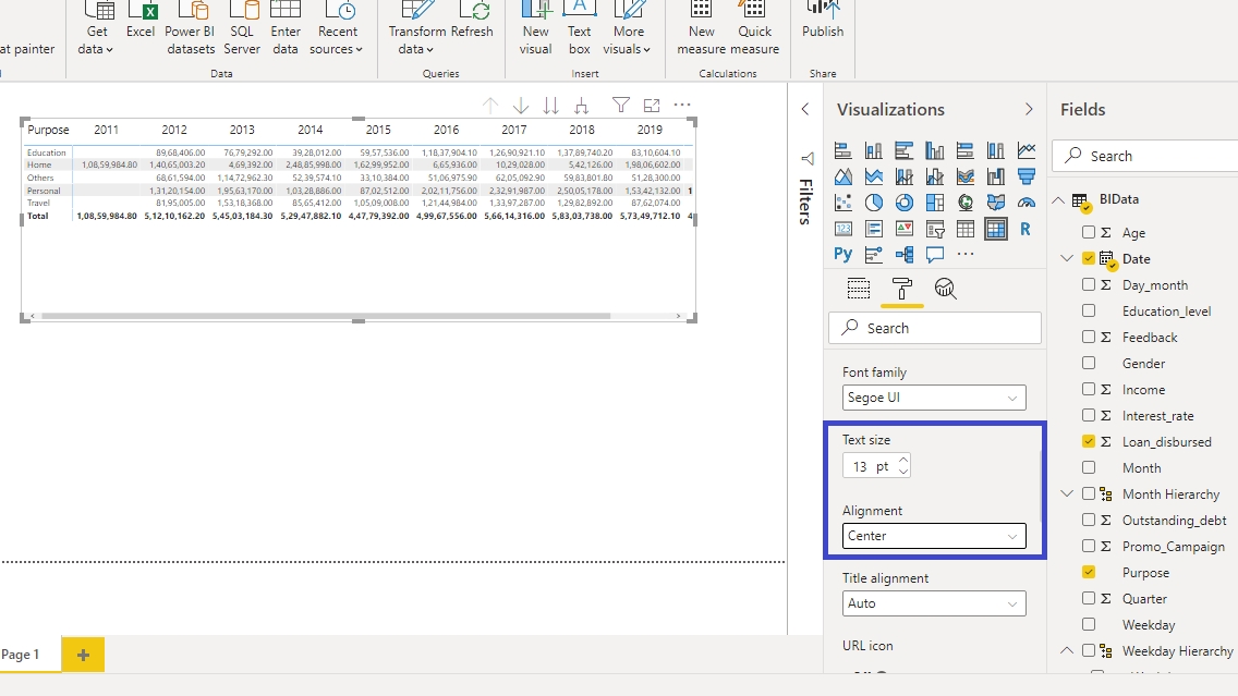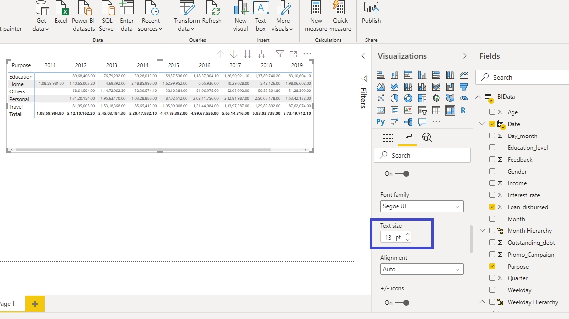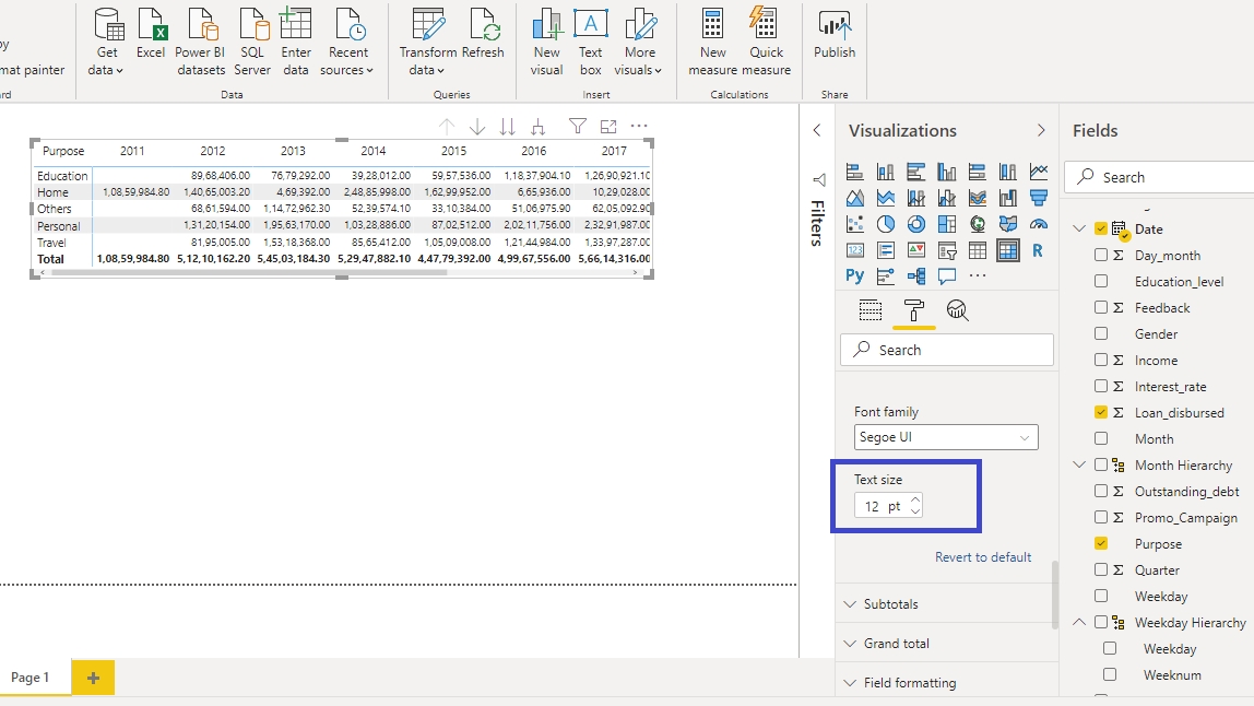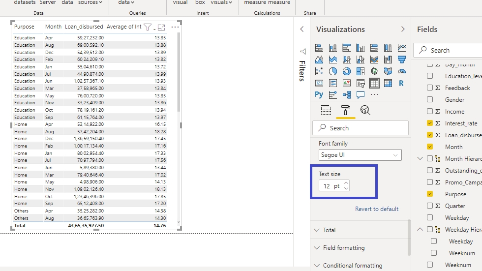Set the Text size of 12. This will increase the font size of values inside the table. Now you can see that the table is properly visible.