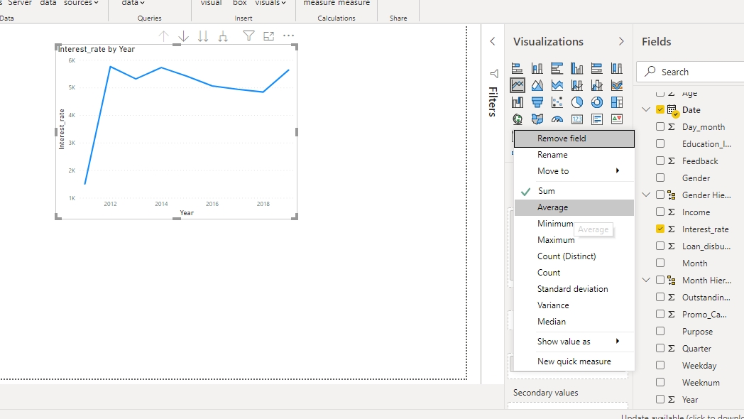 The above line chart is incorrect as it adds the interest rate values. To make the correction, right click and select Average.