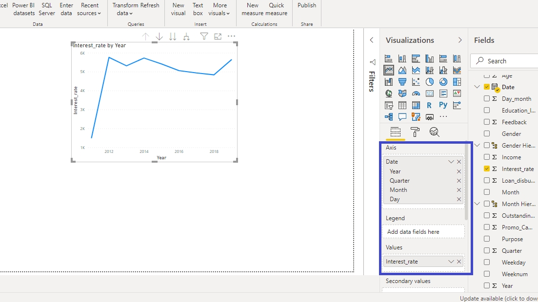 Drag the variable Date into the Axis field, and Interest_rate in the Values field.