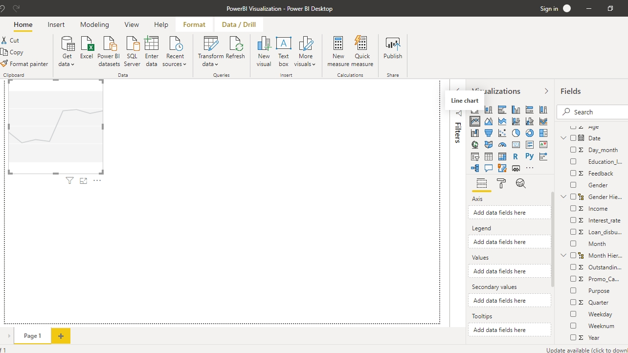 A line chart is a popular visualization chart used to represent a series of data points connected by a straight line. It is used to represent continuous data sets. Time series forecasting and stock market trend analysis are common applications of line charts. This guide will demonstrate how to build line charts in Power BI Desktop.