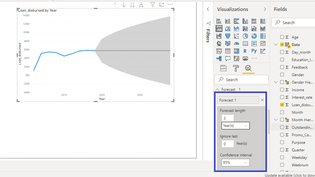 You have created the time series chart named Loan_disbursed by Year. The next step is to generate the forecast of future loan disbursal.