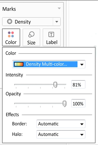 Figure 1.24: Options for adjusting the Color, Intensity, Opacity, and Effects for Density marks
