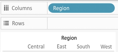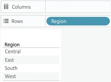 When a discrete field is used on the Rows or Columns shelves, the field defines headers. Here, the discrete field Region