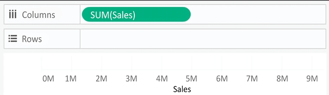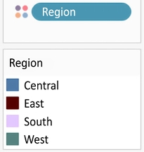 Another important distinction to make with fields is whether a field is being used as discrete or continuous. Whether a field is discrete or continuous determines how Tableau visualizes it based on where it is used in the view. Tableau will give a visual indication of the default value for a field (the color of the icon in the Data pane) and how it is being used in the view (the color of the active field on a shelf). Discrete fields, such as Region
