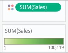in the previous example, are blue. Continuous fields, such as Sales