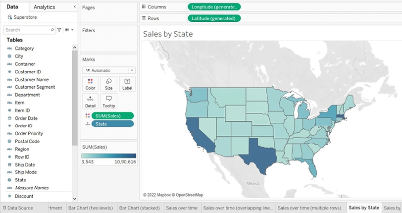Let’s say you want to understand sales for Superstore and see whether there are any patterns geographically.