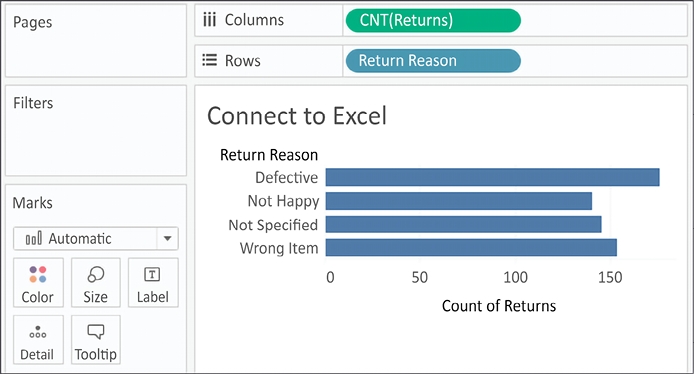 data source, create a time series showing a Count of Returns by Return Reason. Your view should look like the following screenshot: