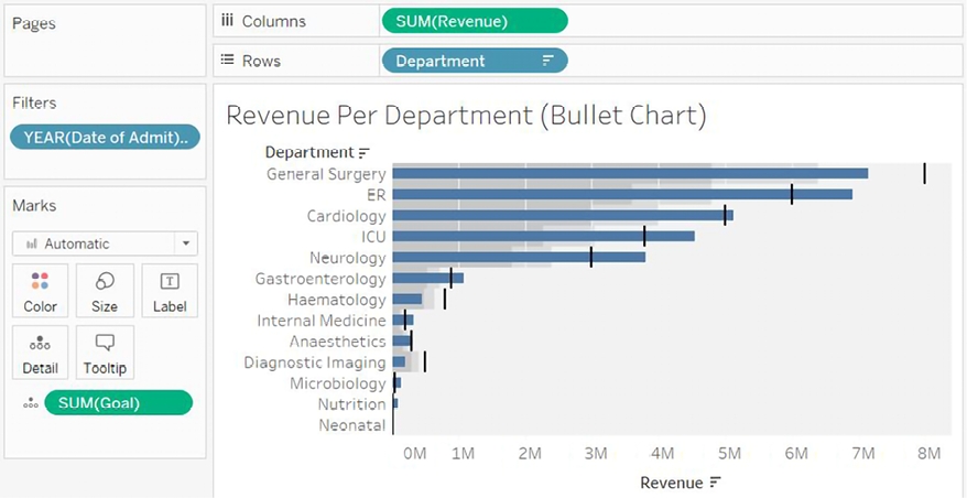 Navigate to the Revenue Per Department (Bullet Chart) sheet.