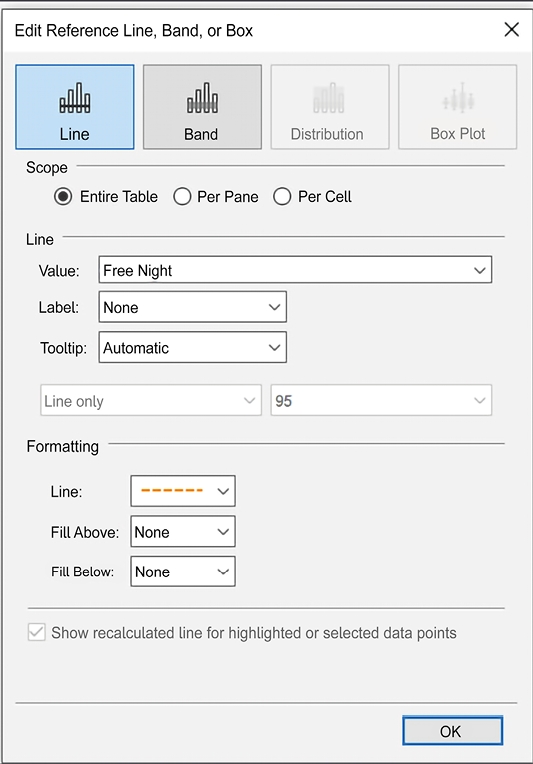Figure 4.19: Use the Edit Reference Line dialog to adjust the formatting, labels, and tooltips