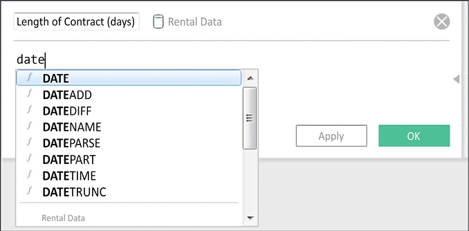 Tableau employs intelligent code completion. It will offer suggestions for functions and field names as you type in the code editor. Pressing the Tab key will autocomplete what you have started to type based on the current suggestion.