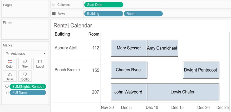 Figure 4.17: The calculated field allows us to create the Gantt chart